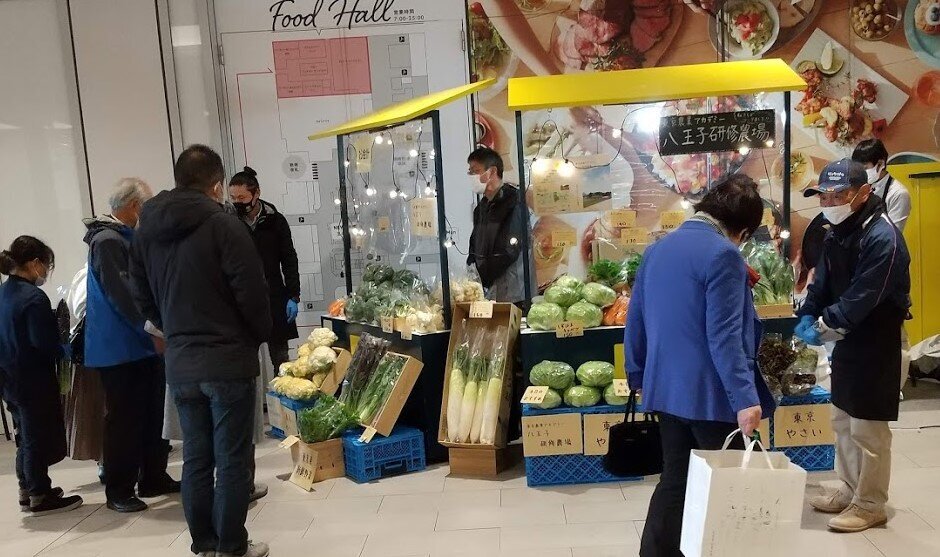 東京農業アカデミーでは研修の一環として、農場で生産した野菜を敷地内の特設販売所や都内のマルシェ、イベント等で販売しています。開催日程等はLINEにて配信しておりますので、ご興味のある方はご登録ください。