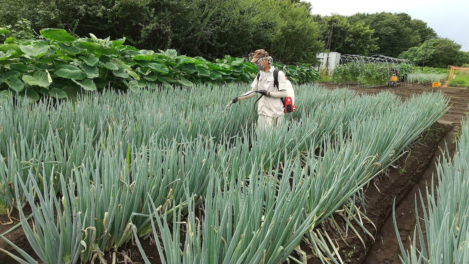 天気予報を見て作業予定を立てるも、予報通りではなく、また雨かといった雨が続いています。予報だとそろそろ晴れる!と病虫害防除のための薬剤散布を準備するも、ぽつぽつと降りはじめ、あきらめ片付ける。中には、ここぞ!と晴れ間に散布はじめるも、途中でまた雨が降り出して脱力する研修生の姿もみられます。天気を読むのが難しいこの頃です。