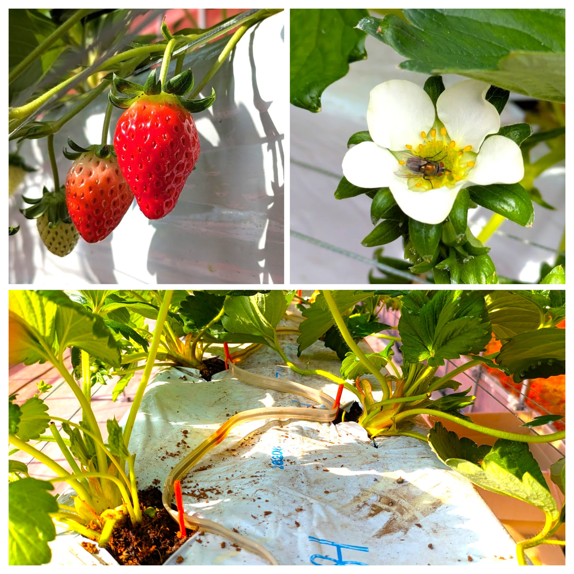 今回は、9月12日定植で「紅ほっぺ」、「章姫」、「よつぼし」の3品種を栽培していますが、定植後の暑さの影響もあり、「紅ほっぺ」は開花が遅れてしまっていますが、「章姫」と「よつぼし」の収穫が始まりました。 授粉のために導入したハエ「ビーフライ」もしっかりと働いてくれているようで、今のところ奇形果などの発生もなく、順調に着果しています! 朝晩の冷え込みが厳しくなってきましたので、アビルヒーターという電熱線でクラウン付近と培地内の加温を開始しています。