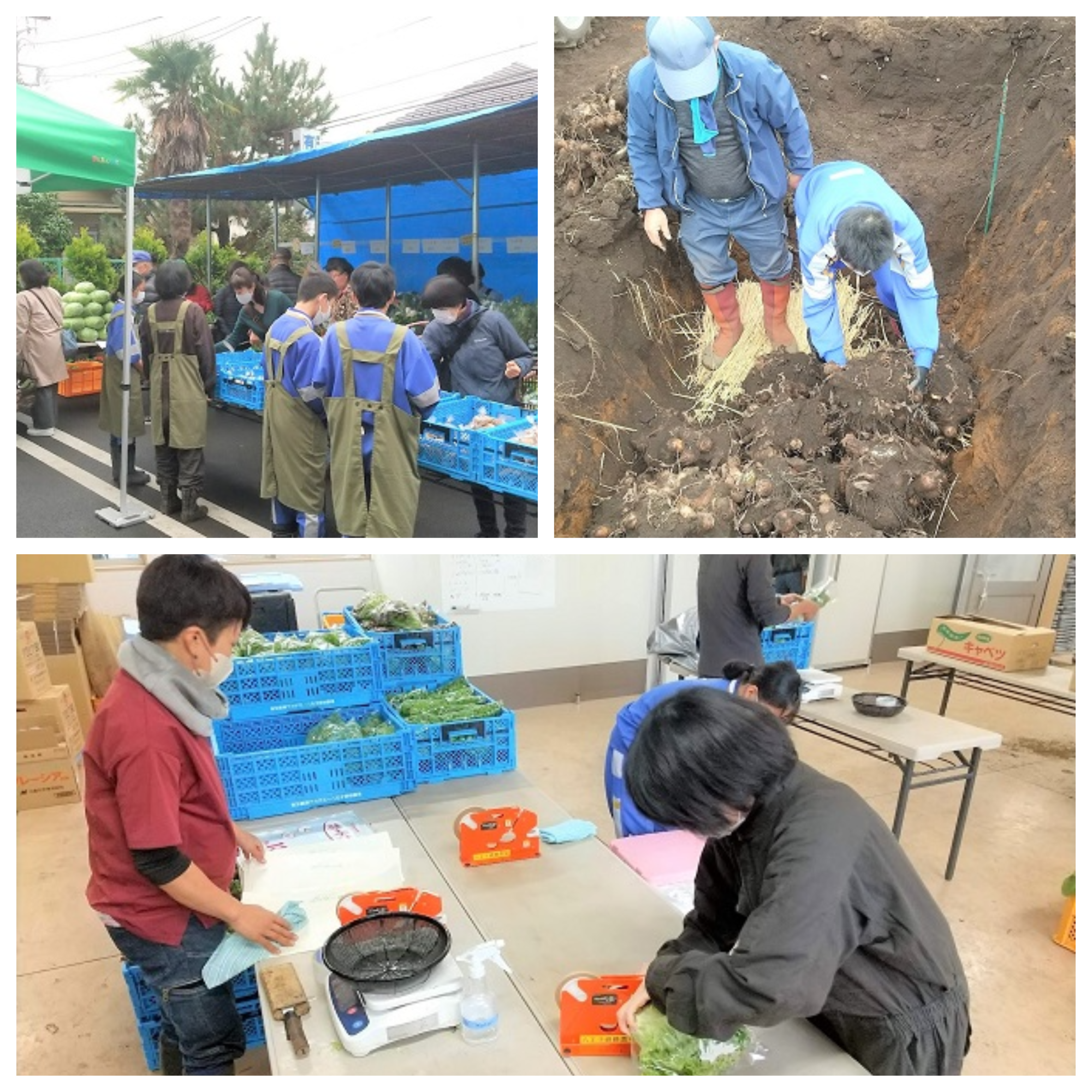 11月28日から30日の3日間、職場体験学習として八王子市立第一中学校の生徒4名を受け入れました。里芋の収穫、種芋の保存作業、直売用の荷造りなどを体験して貰いました。また、直売会にも参加して、自分たちが荷造りをした商品の販売も行いました。皆さん農業は初めての体験ということでしたが、一生懸命に作業をしてくれました。今回の体験をきっかけに、より多くの生徒さんに農業の魅力や食の大切さを知って貰えると嬉しいですね。