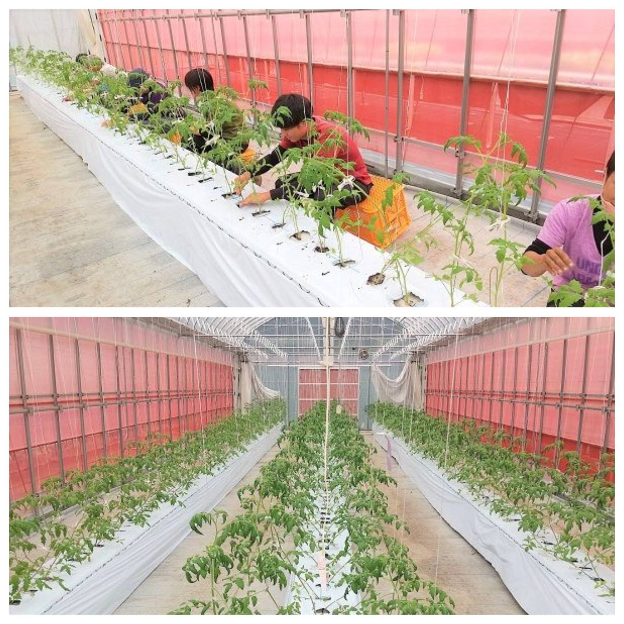 「東京エコポニック」を導入したハウストマトの定植作業を行いました。東京エコポニックは、安価なヤシガラ培地を使用した養液栽培システムで、肥料と水が必要最低限で済み、廃液も出さず、環境負荷が小さいことが特徴です。このハウスには、ICTを活用した統合環境制御システムも導入されていて、今期も9月から来年8月まで周年でトマトを収穫する予定です。 研修生が就農してすぐに取り入れることは難しいですが、いずれ選択肢の一つとなり得るよう、アカデミーでは最新の設備も整えています。