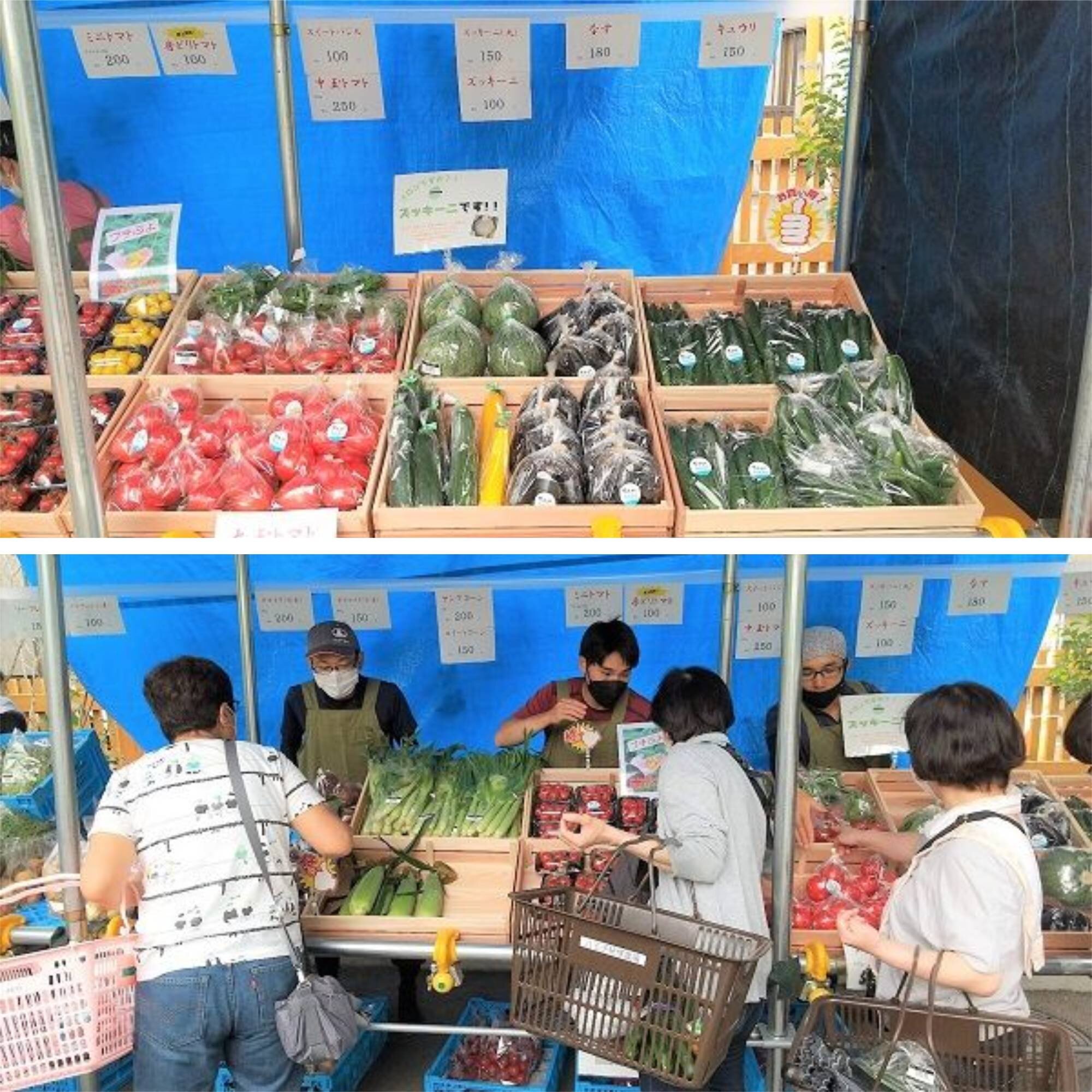 令和4年度夏野菜の直売会を開催しました。 トマト、ナス、キュウリ、ズッキーニなどの夏野菜に加えて、タマネギやレタスなども販売しました。今回のイチ押し商品は朝採りのスイートコーンです。直売会の直前に収穫した大変新鮮な商品です。スイートコーンは鮮度で味が大きく変わるので、直ぐに冷蔵するか調理するのがおススメです。 直売会には約60人以上のお客様が来られ、大盛況でした。次回は7月6日に開催する予定です。その他にも事務所内でミニ直売も始めました。のぼりを立ててお知らせしますので、是非お越しください。
