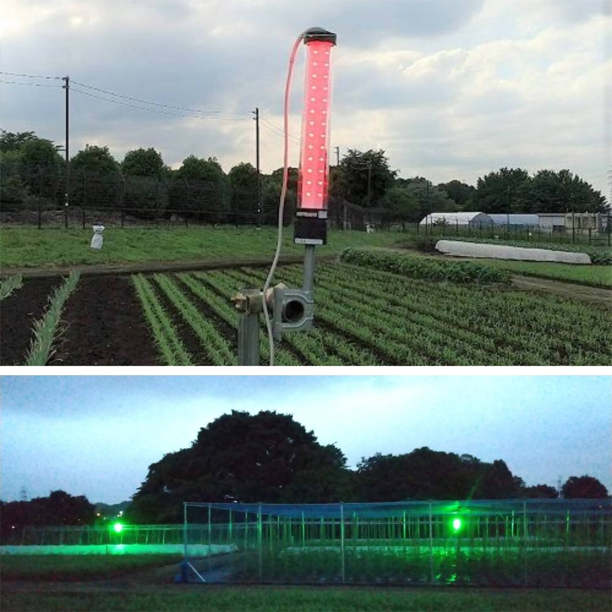 「モスバリア」というLEDの防虫灯を設置しました。緑色の光は夜間に照射することで、夜行性の蛾類を昼間と勘違いさせ繁殖行動や摂食活動を鈍らせることが期待されます。毎年、アカデミーのトマト畑では、夜間に果実を吸汁するヤガ類の被害が多発します。また、ナスやキュウリ、ピーマンはオオタバコガによる果実の食害がみられます。赤色の光は主にスリップスが対象です。今作では光の力により、収量や品質の向上、農薬使用回数の削減などの効果が楽しみです。 アカデミーでは環境に配慮した新しい技術も積極的に導入していきます。