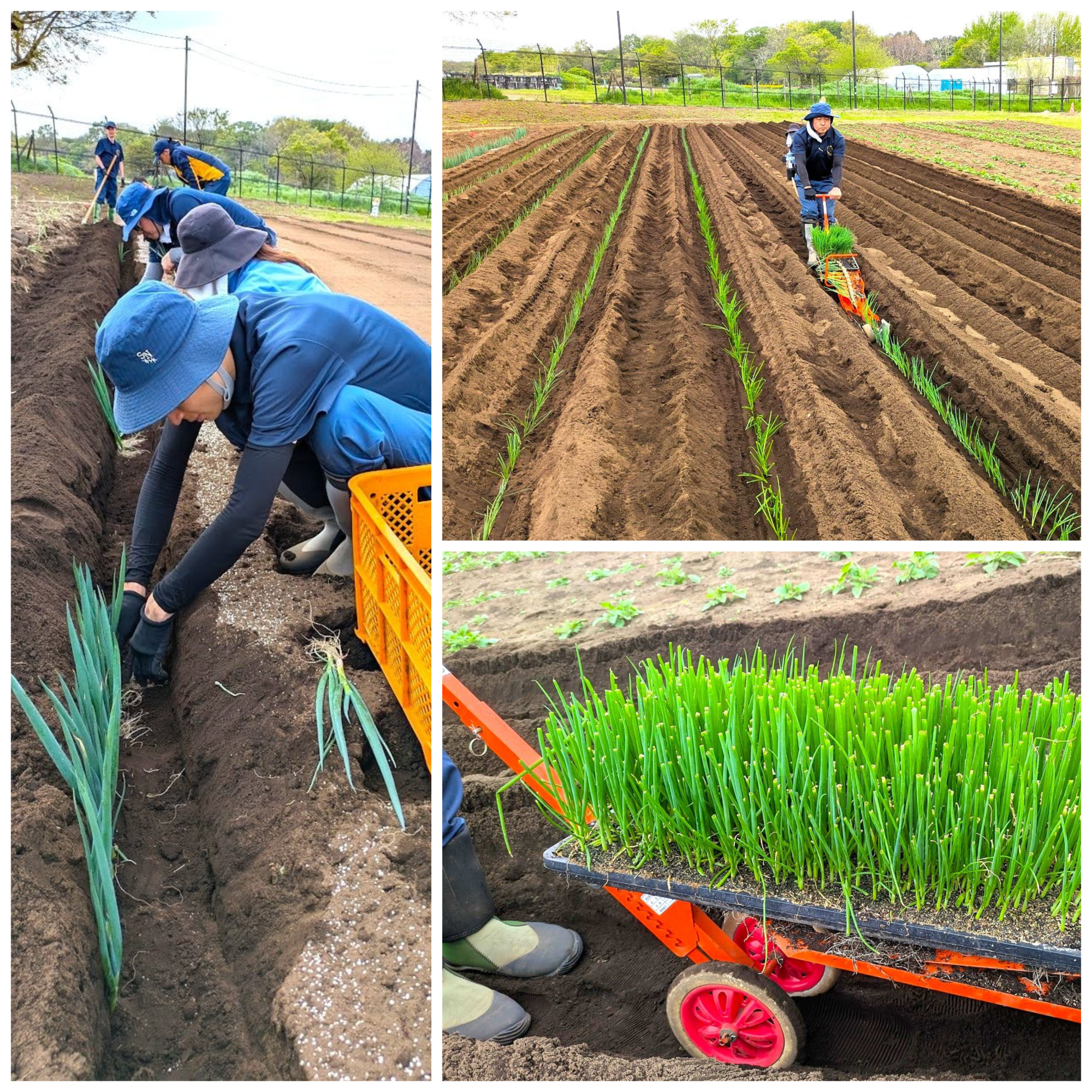 7期生がネギの定植作業を行いました。今回は、手植えと移植器の2通りの方法を経験してもらいました。